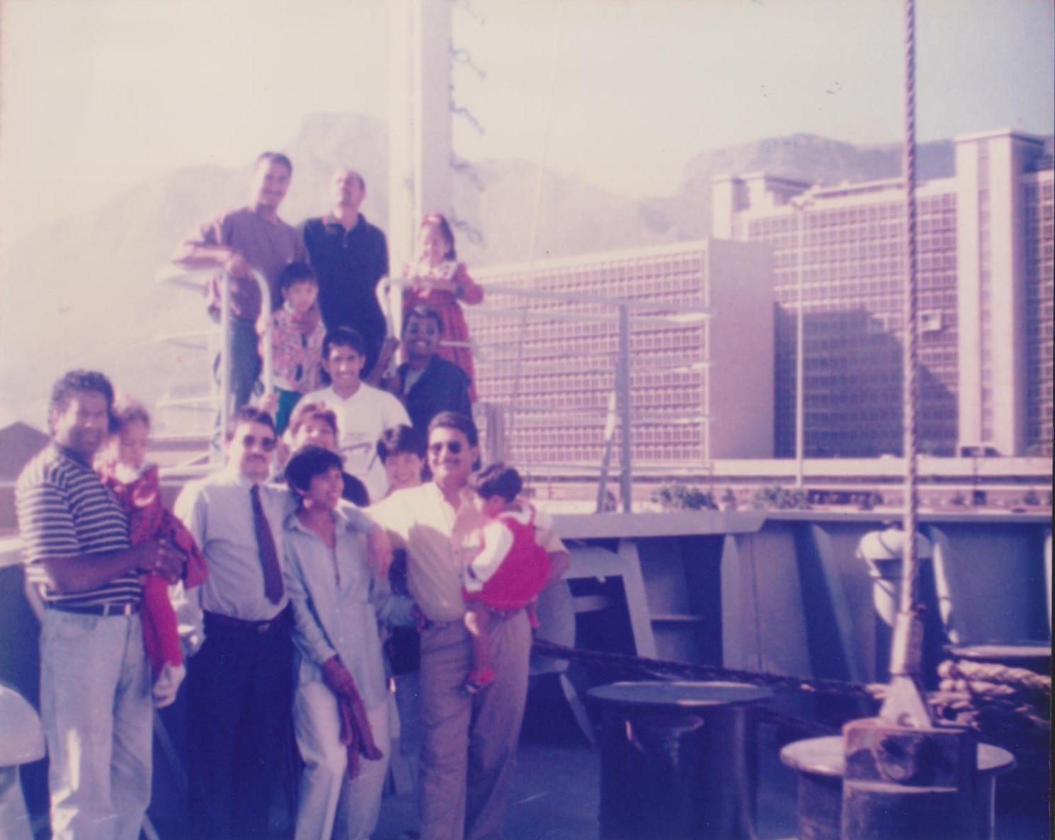 Mustakim Gierdien's wife, Fazlyn, family and friends aboard the SAS Outeniqua before his first voyage to Antarctica