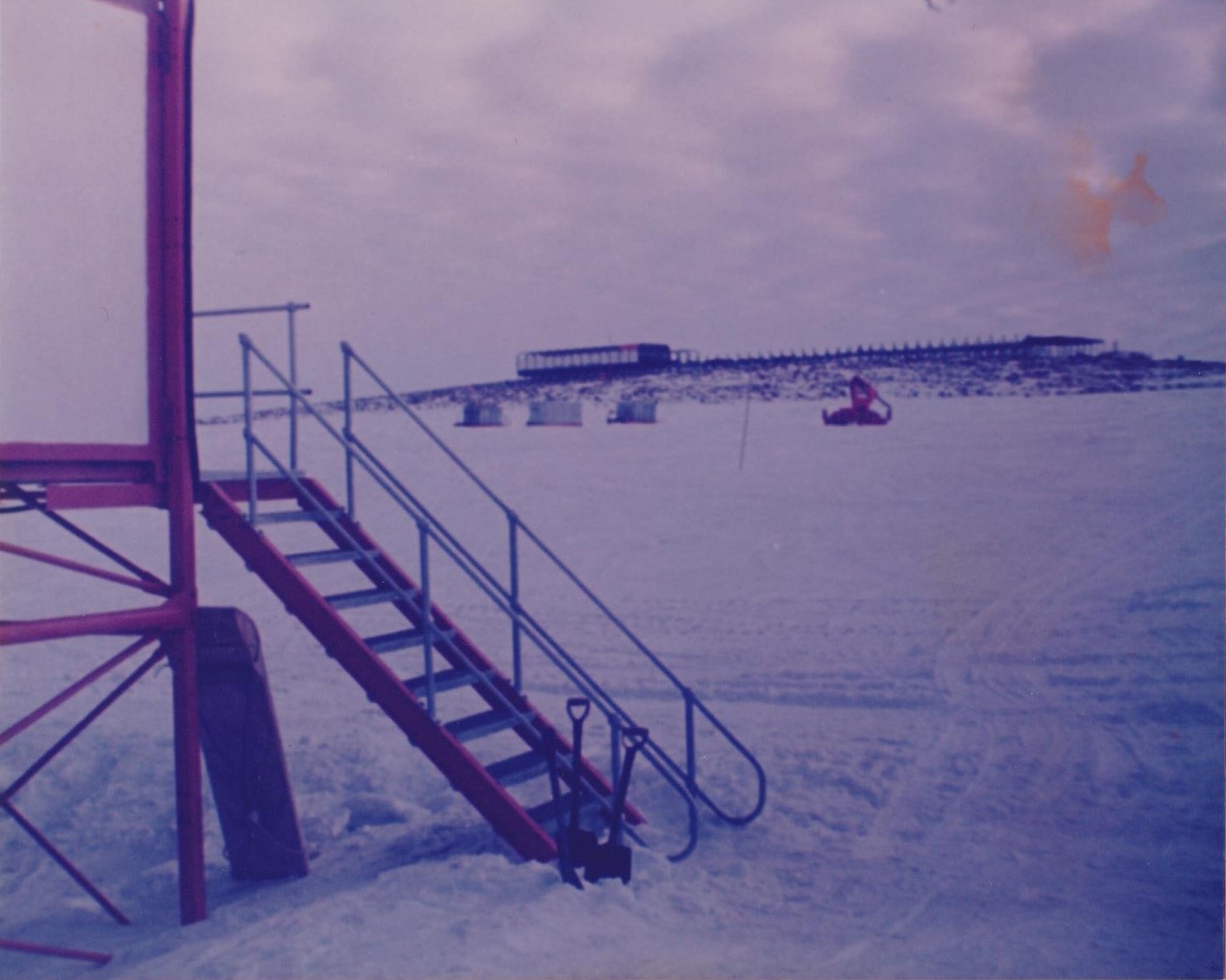 Three Mobile Snow Smelters and Crane Sled Parked Between Construction Base and SANAE IV Under Construction