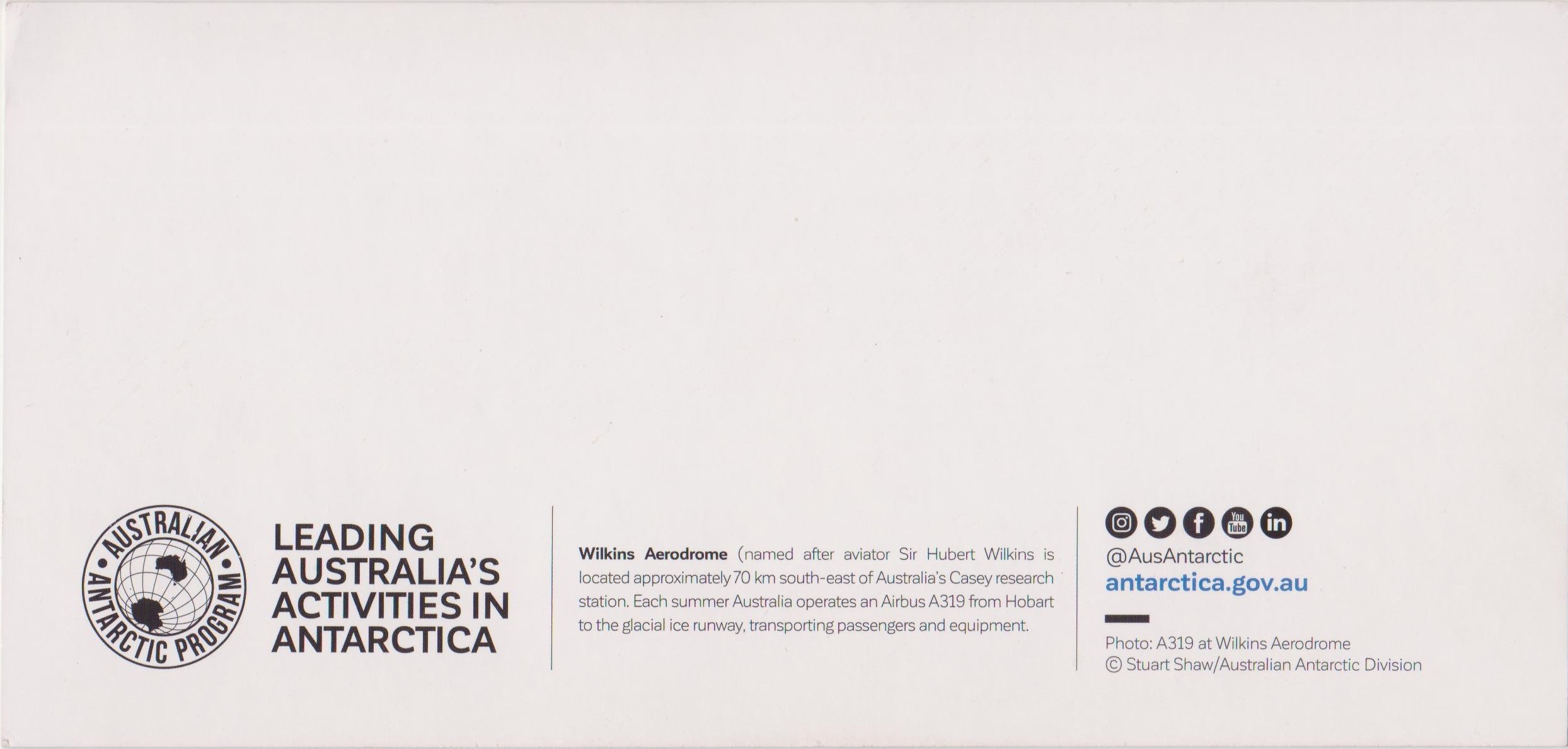Promotional Card: Airbus A319 at Wilkins Aerodrome, Australian Antarctic Program